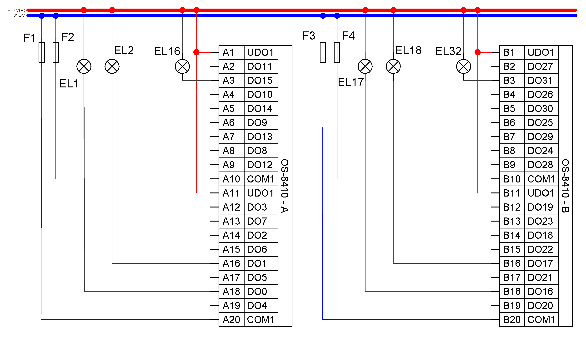 Modul OS-8410 je určený pro ovládání až 32 zátěží 24 V DC / 0,05 A – především externích modulů na DIN lištu řady OS-04xx nebo OR-04xx. Výstupy jsou realizovány polovodičovými spínači. Modul je osazen dvěma konektory, na které je vyvedeno vždy 16 výstupů. Modul obsahuje inteligentní výstupní obvody, které vyžadují připojit externí napájecí napětí 24 V DC.