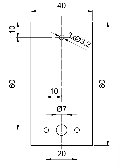 Obr. 2 Rozměry a rozteč otvorů pro upevnění modulu SZN-x