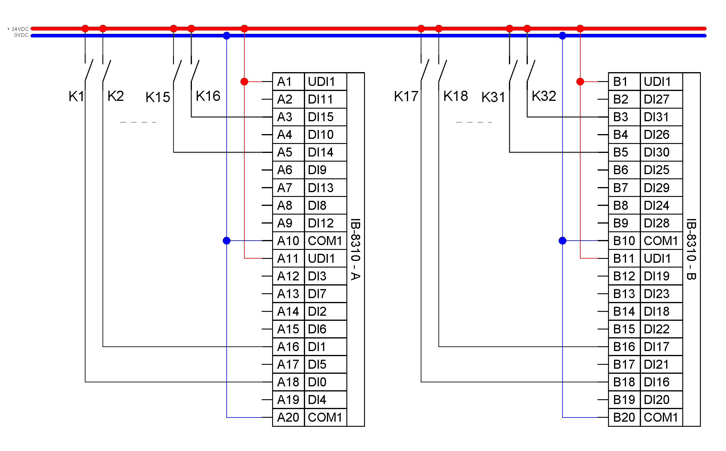 Modul IB-8310 je určený pro snímání až 32 binárních signálů 24 VDC se společnou svorkou mínus, typ 3 a je určen především pro připojení externích modulů na DIN lištu řady IB-04xx. Modul je osazen dvěma konektory, na které je vyvedeno vždy 16 vstupů. Modul obsahuje inteligentní vstupní obvody, které vyžadují připojit externí napájecí napětí 24 VDC.